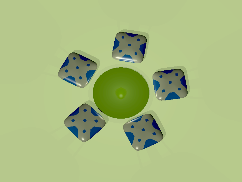 Alternativamente, como mostrado acima, vários HTUs podem ser dispostos ao redor de um gramado circular central dentro de uma gleba para acomodar uma família extensa ao longo de gerações. Árvores, canteiros de flores e arbustos podem ser adicionados para criar um ambiente tranquilo.