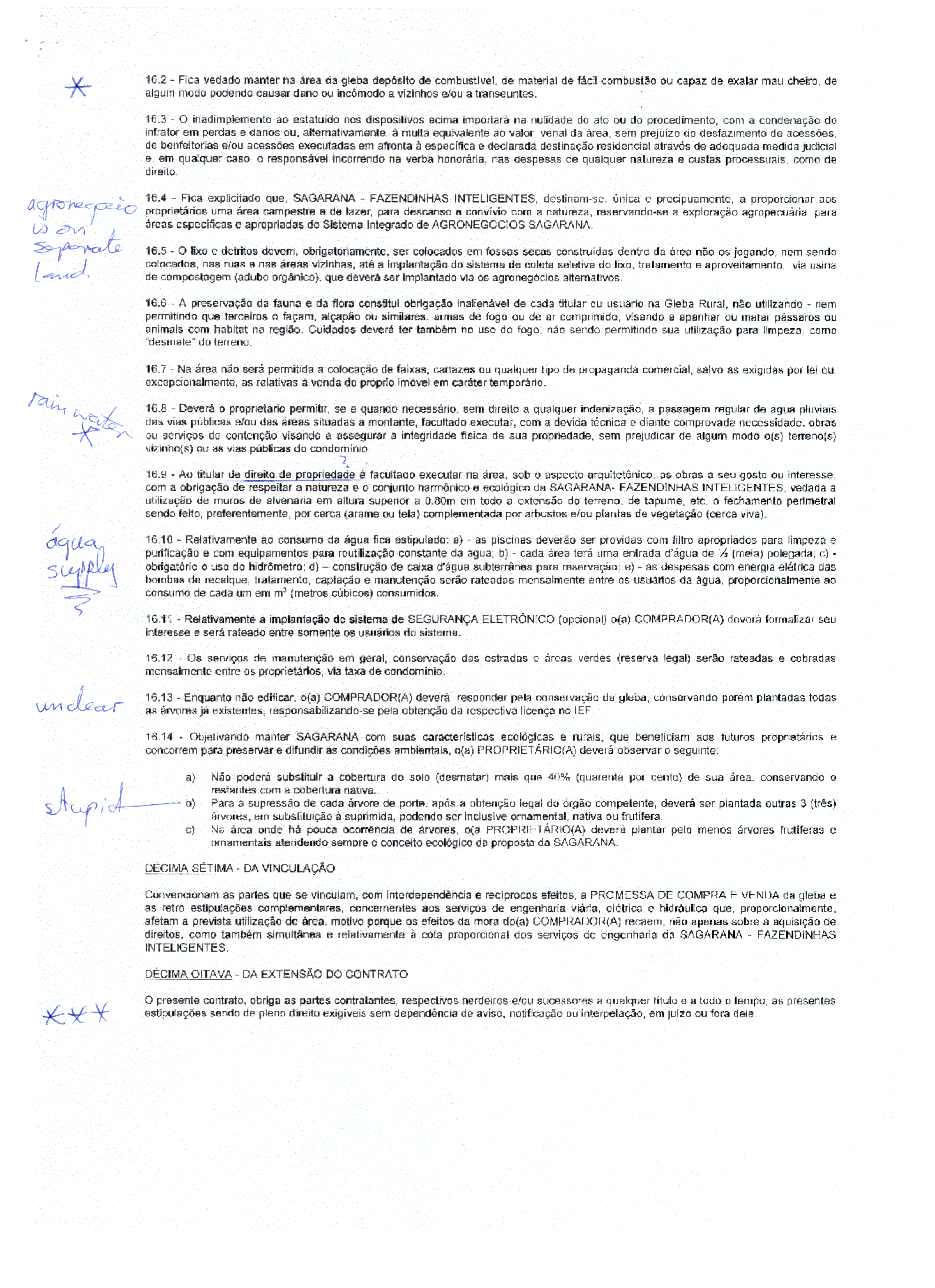 In the year 2001, my friend Jess bought a plot of land within a kind of legal construct, which the vendor referred to as a "Rural Condominium". I could not find any references on the www about the legal existence of such an entity. The name of this so-called "Rural Condominium" is Sagarana — Fazendinhas Inteligentes. Notwithstanding, I shall refer to it, from here on, as Sacanagem — Fazendinhas Inteligentes. In Portuguese, the word "sacanagem" signifies trickery or devious behaviour, which in the circumstances, seems to me to be much more appropriate.